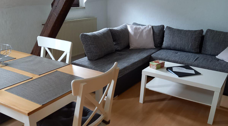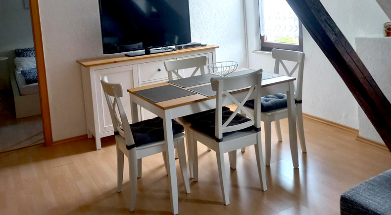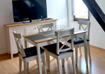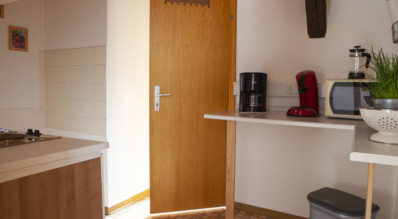 Wohnzimmer SAT-TV, Ecksofa mit Schlaffunktion, 2 Doppelschlafzimmer: Ende der Betten offen, Radiowecker, Verdunklungsvorhang, Kleine Küche : Kühlschrank, 2 Plattenherd, Mikrowelle, Senseo Padmaschine, Toaster, Eierkocher, Wasserkocher, Ausreichend Geschirr: Besteck, Gläser, Töpfe und Pfannen, Tageslichtbad Dusche/WC, Fön