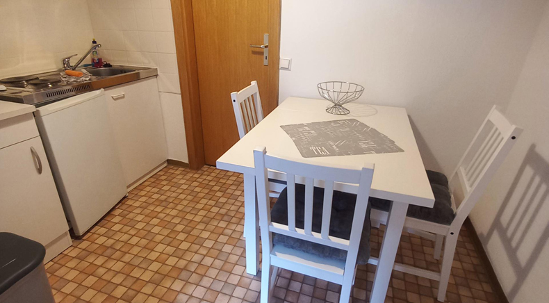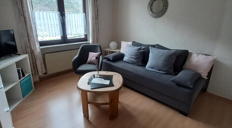 Wohnzimmer SAT-TV , Schlafsofa mit Boxspringfederung, 1 Zweibettzimmer: Ende der Betten offen und 1 Einzelzimmer, Radiowecker, Kleine Küche : Kühlschrank, 2 Plattenherd, Mikrowelle, Kaffeemaschine, Siebstempelkanne (French Press), Toaster, Eierkocher, Wasserkocher, Ausreichend Geschirr: Besteck, Gläser, Töpfe und Pfannen, Verdunklungsvorhänge/Rollos Tageslichtbad Dusche / WC